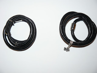 Sidst jeg handlede på nettet købte jeg også lidt farvet imiteret læder. Og i weekende blev disse 2 så forvanlet til armbånd. Men nu har jeg igen ikke flere magnet.. så det blev kun til de 2. Skal lige sige at i virkeligheden ser de ikke så plastik ud som de gør på billedet..